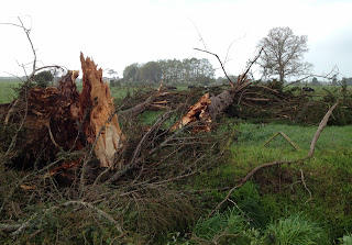 A nasty weather bomb descended across the north island yesterday, and upon Willowbrook. One of our 3 year old Plane trees was snapped in half and many of our new trees blown over. It was difficult driving home with the twigs and leaves and rain hitting the windows. We fared better than some parts of the island, where roofs were ripped off and windows blown in. Just a little way down our road several mature trees were uprooted or torn apart by the winds...