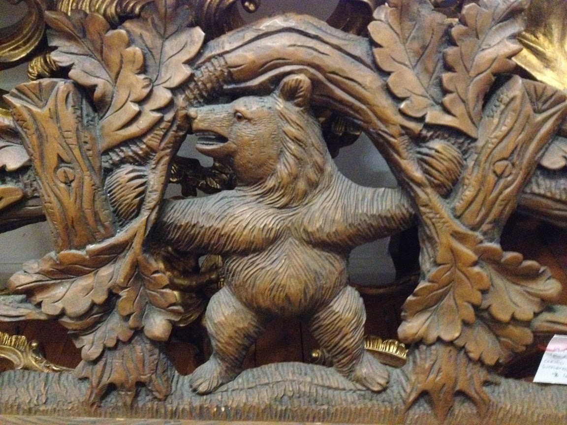 There was also a collection of bear themed furniture, which on the whole I didn't fancy, but I somehow thought this bench with a carved back including a bear showing his belly was quite amusing...